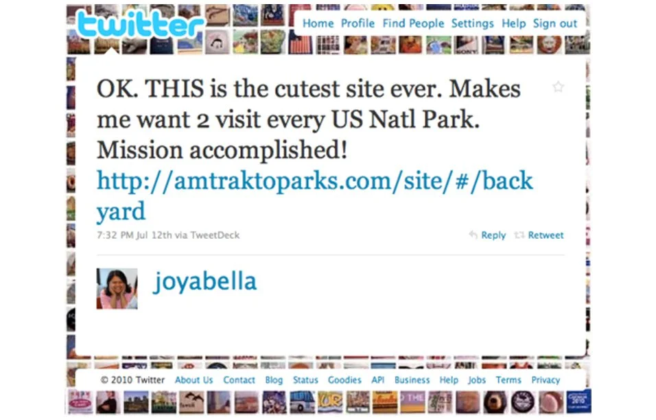 Amtrak — “Enjoy the Journey.” Campaign Case Film Slide 1 Slide 1 (current slide) Slide 2 Slide 2 (current slide) Slide 3 Slide 3 (current slide) Slide 4 Slide 4 (current slide) Slide 5 Slide 5 (current slide) Slide 6 Slide 6 (current slide) Slide 7 Slide 7 (current slide) Slide 8 Slide 8 (current slide) Slide 9 Slide 9 (current slide) Slide 10 Slide 10 (current slide) Slide 11 Slide 11 (current slide) Slide 12 Slide 12 (current slide) Slide 1 Slide 1 (current slide) Slide 2 Slide 2 (current slide) Slide 3 Slide 3 (current slide) Slide 4 Slide 4 (current slide) Slide 5 Slide 5 (current slide) Slide 6 Slide 6 (current slide) Slide 7 Slide 7 (current slide) Slide 8 Slide 8 (current slide) Digital Guerrilla Tactic Video